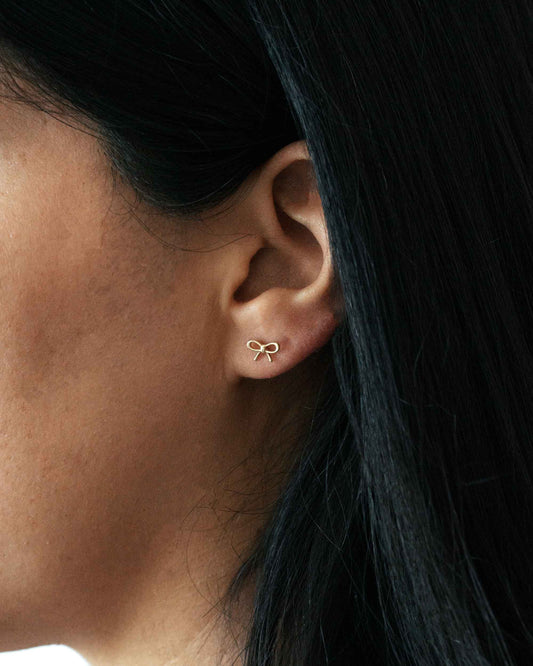 14k Yellow Gold Bow Earring Stud | Coquette Bow Stud | Baby Bow Earring | PVLA