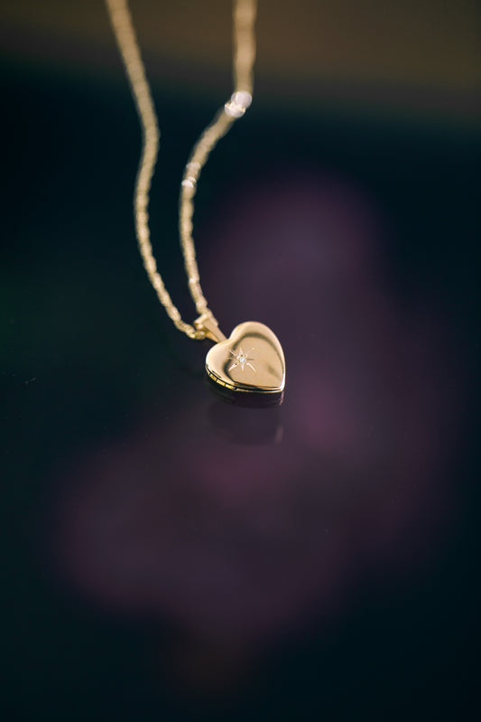 PVLA | 14k Heart Locket Picture Pendant | Star Diamond Heart Locket Necklace