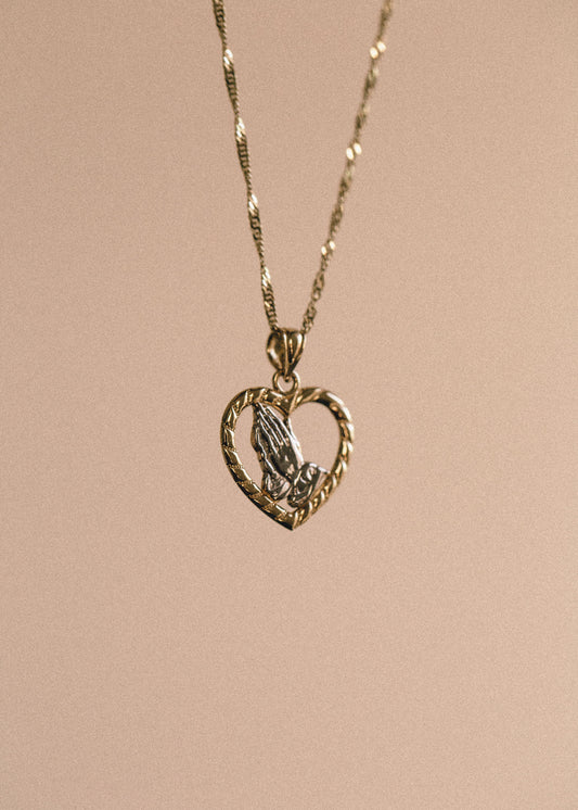 PVLA | 14k Gold 2-Tone Praying Hands Heart Pendant | White Gold Yellow Blessing Hands Charm Necklace