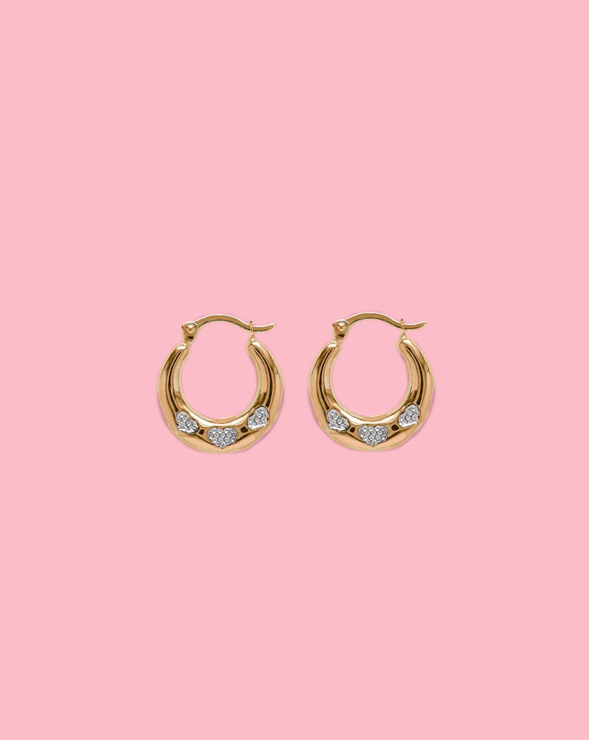 14k Dome Hoop Earring | Diamond Cut Heart White and Yellow Gold Hoop | Baby 14k Gold Jewelry | Heart Design Gold Hoop | Baptism 14k Gold Hoops