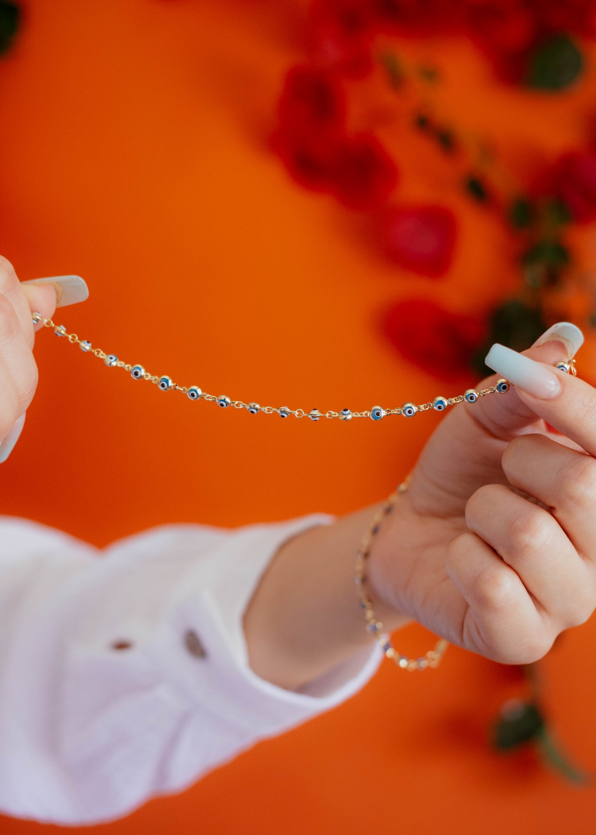 PVLA | 14k Solid Gold Evil Eye Bracelet | Mal De Ojo 14k Pulsera