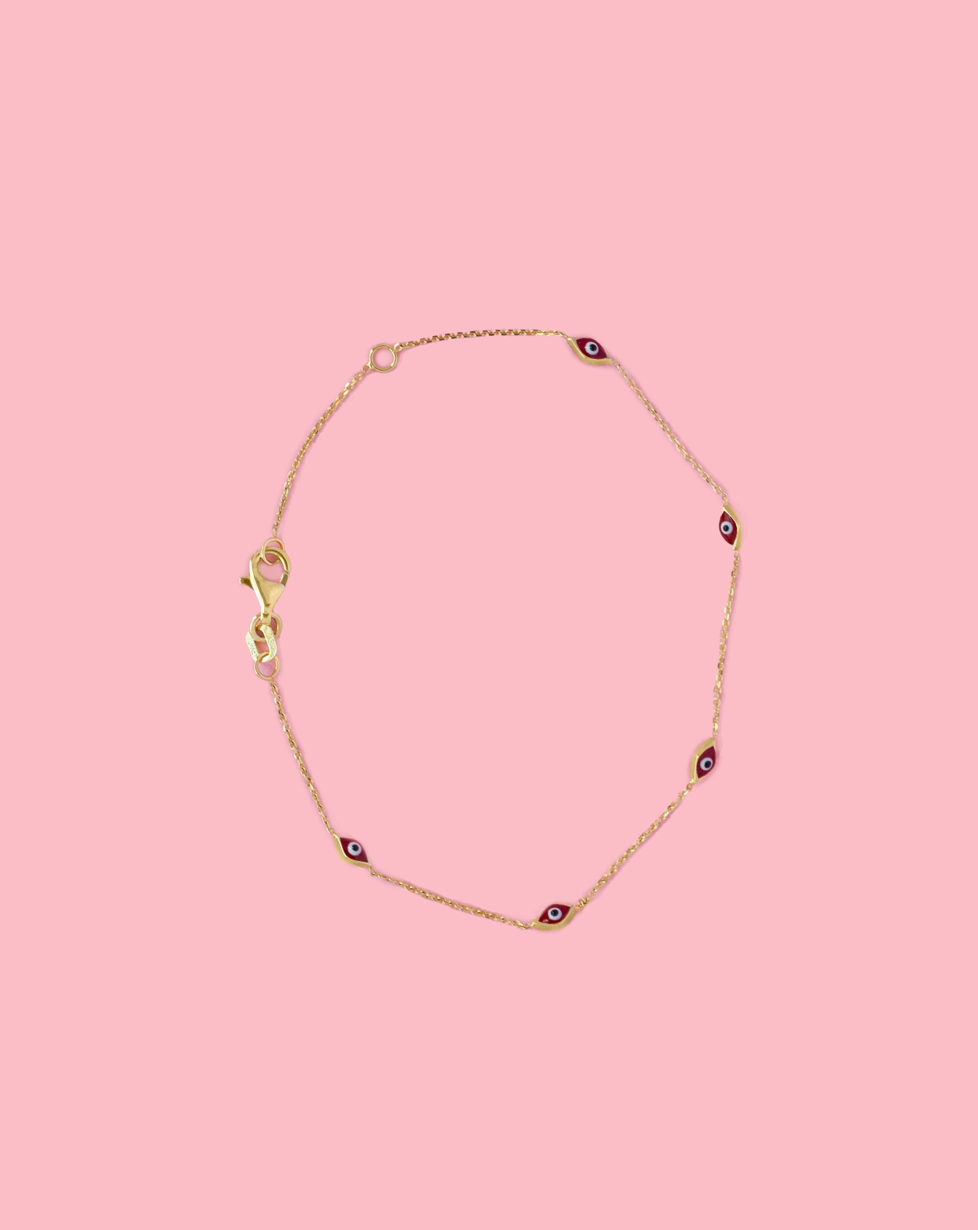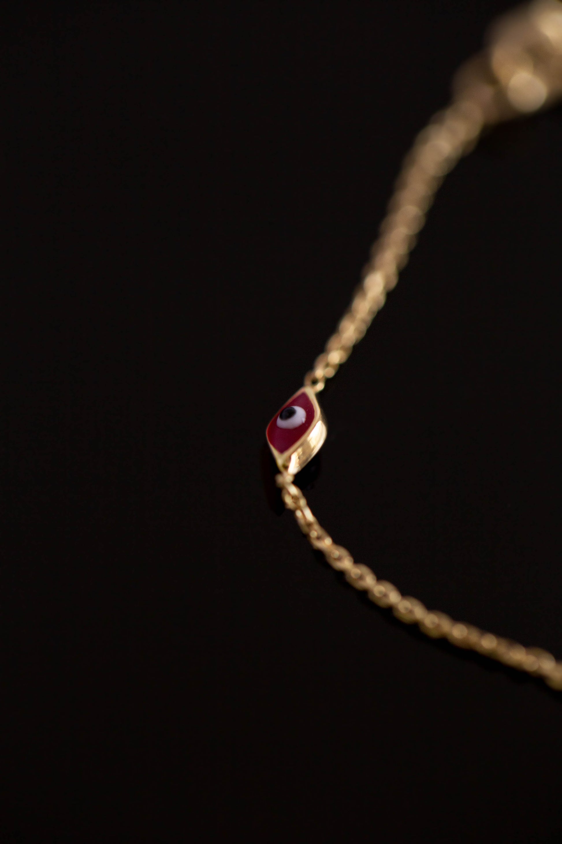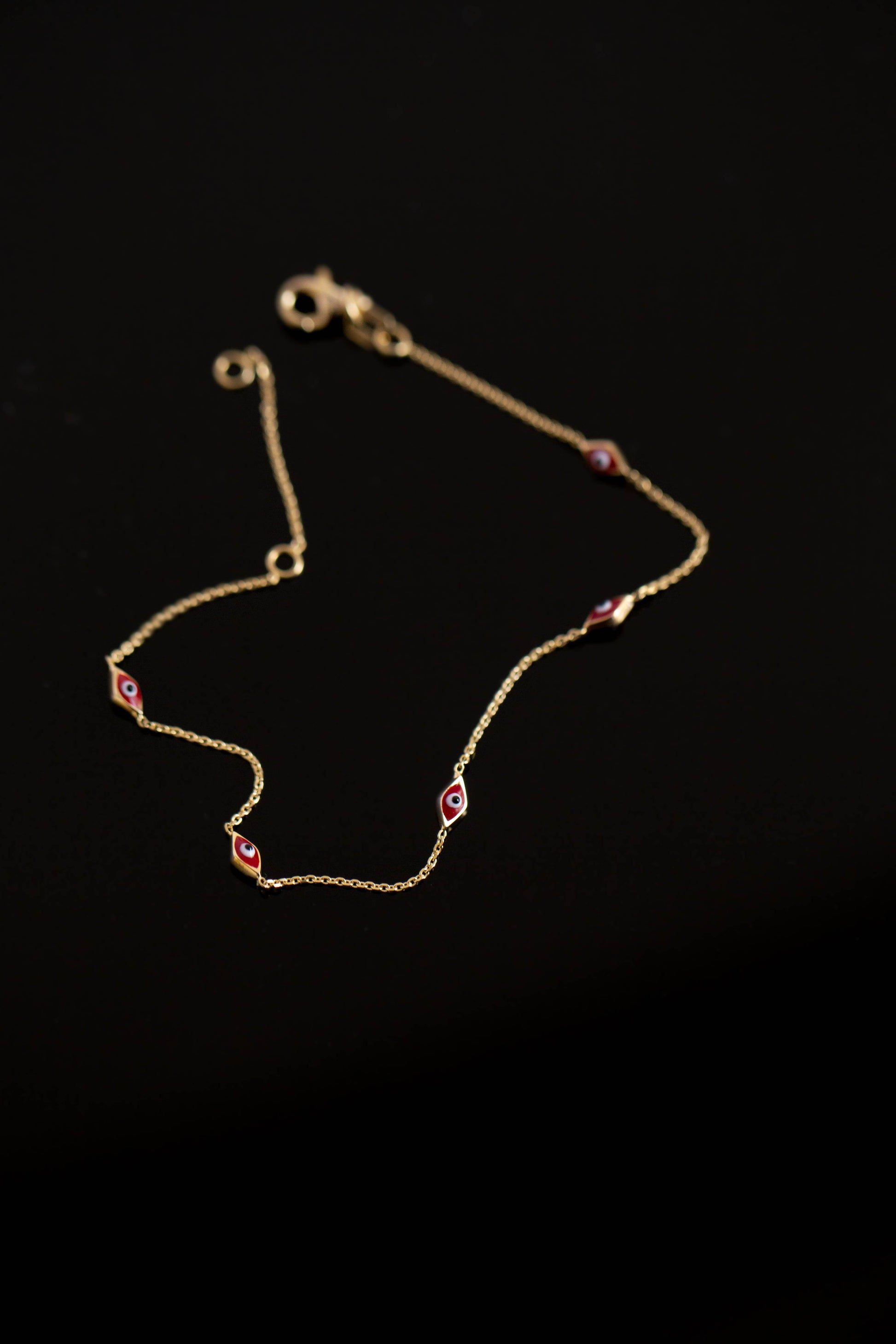 Red Evil Eye 14k Bracelet | 14k Solid Yellow Gold Evil Eye 7" Bracelet | Mal De Ojo Red Bracelet | Red Evil Eye Charm Adjustable 6.5" - 7"
